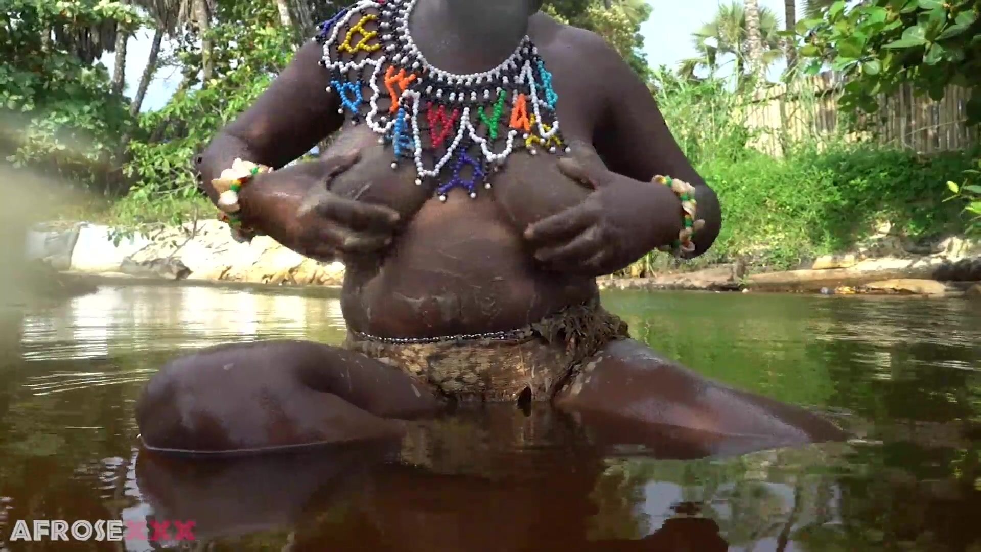 Jolie Sweetheart fondles her black gash in a subtropic woods for your viewing elation