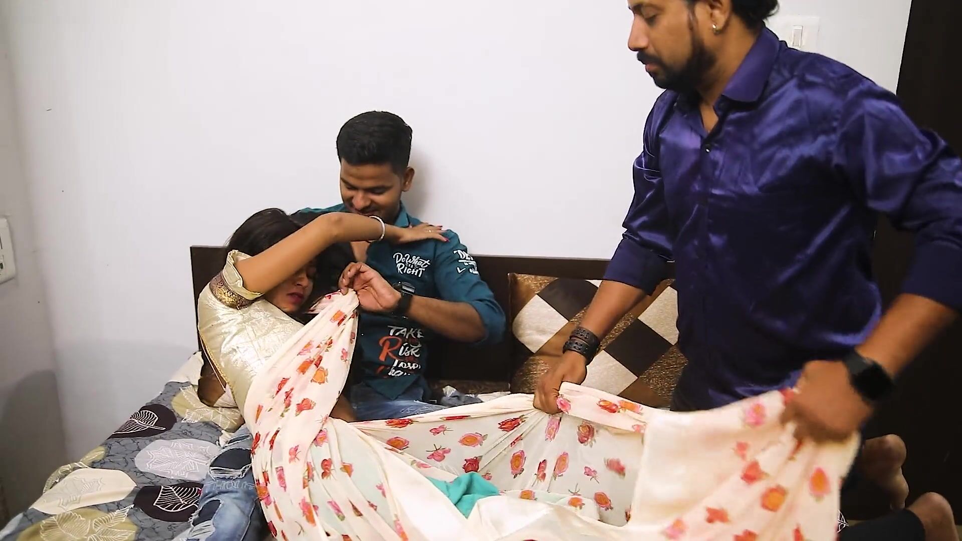 Desi Aunty gets her tight pussy drilled hard by her stepbrother & his hard-core threesome